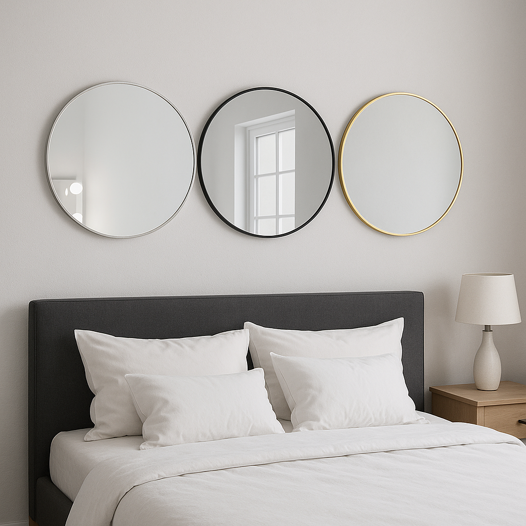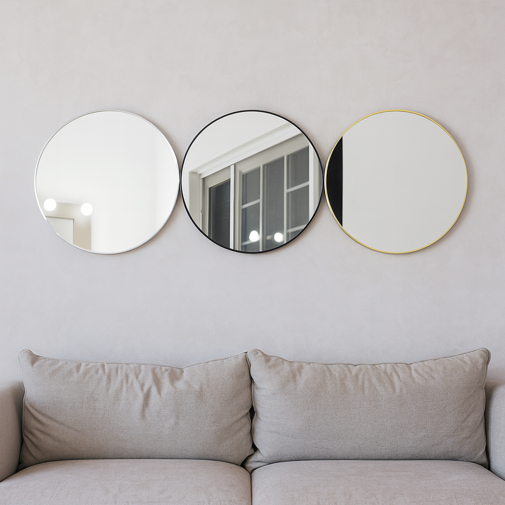 Dale un toque moderno y sofisticado a tu hogar con nuestro paquete exclusivo de 3 espejos circulares 🪞. Cada pieza cuenta con un marco ultra delgado de 3 mm de grosor, en tres acabados distintos para combinar con cualquier estilo: